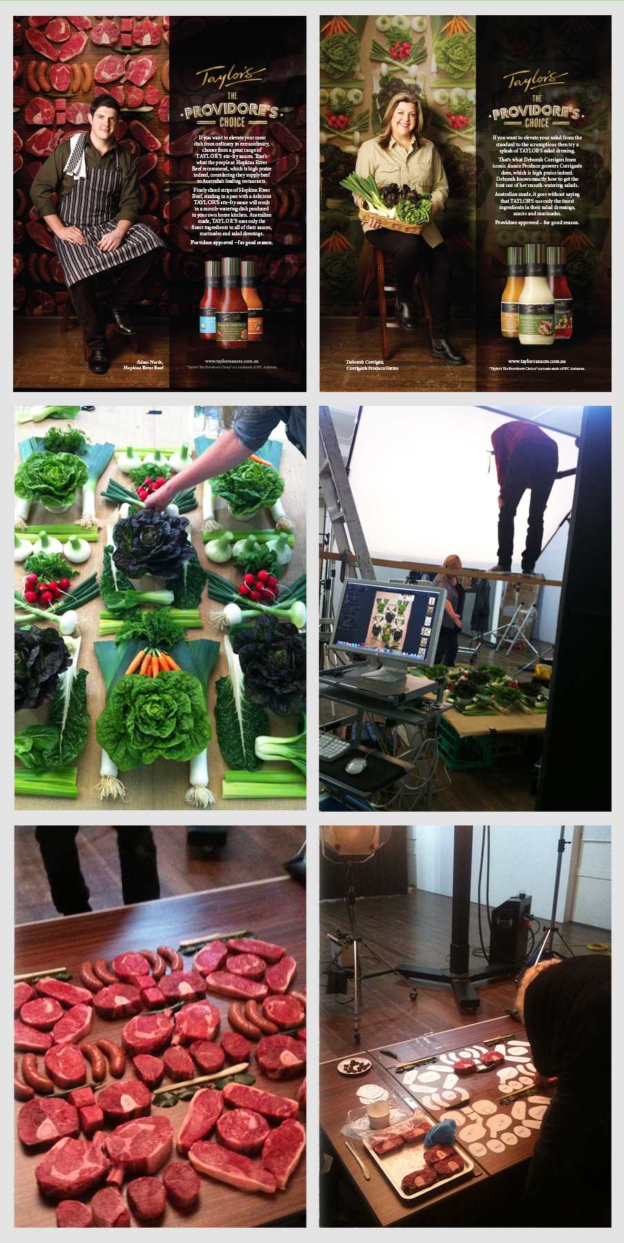 We sourced two of the leading providores within their respective fields; Adam North of Hopkins River Beef and Deborah Corrigan of Corrigans Produce Farms. But rather than just put a face next to the product, our creative team with the help of food stylist Susan Tilley created one-of-a-kind food-as-artwork pieces with patterns consisting of each providores produce as a back drop.